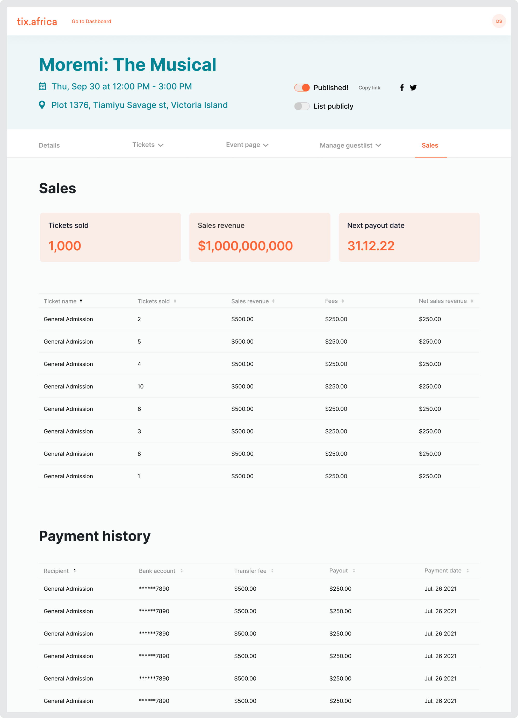 How many people attended your event? How much money did you make from ticket sales? Event organisers typically ask these questions after their event to determine how well the event performed and how they can do better next time. Lucky for you, all this information is right on your Tix dashboard and can be checked and exported anytime.