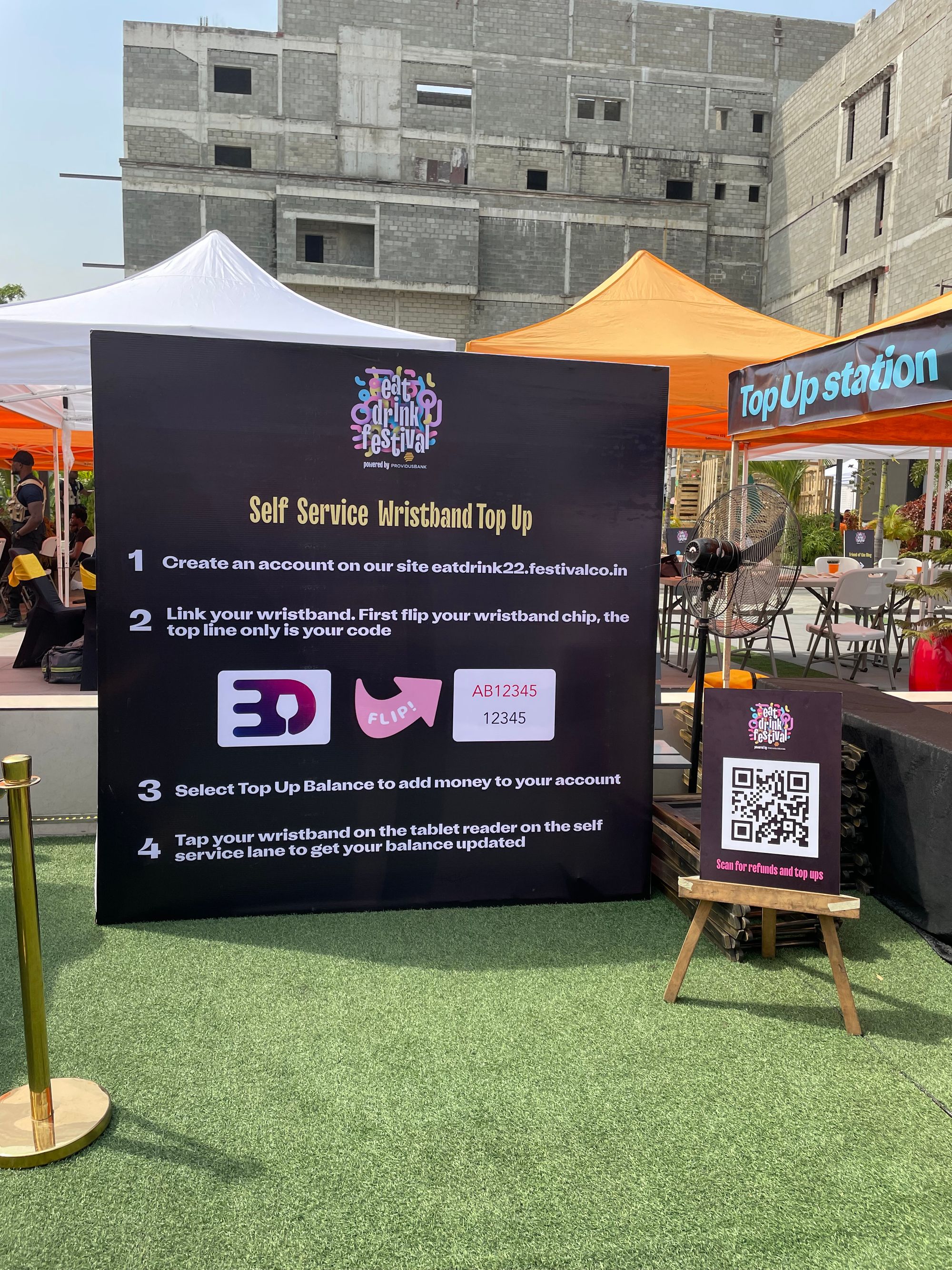 A great example of this is EatDrinkLagos using this board at Eat Drink Festival with a QR code that led attendees to the online portal where they could top up their RFID wristbands or get a refund.
